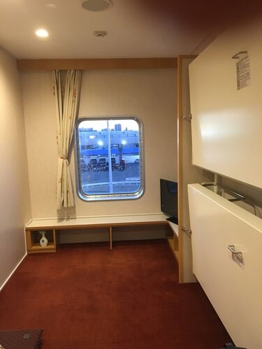 「2名個室」 東京から徳島までオーシャン東九フェリーのシンプルフェリー「フェリーしまんと」に乗船しました。 車両甲板に車を停めたら船内で必要なものを持って客室デッキへあがりフロントで個室の鍵を受け取ります。この一連の動きは旅の高揚感が高まる時…