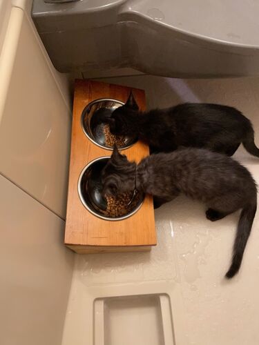 5月も下旬となり暖かくなってきて、動きがなかったサガリバナにようやく新しい葉が出てきました。 さて、猫にゴハンをあげるときは大抵がケージの中です。2匹が並んでガツガツと食べている姿は微笑ましいかぎり。大きくなれよ。 一生懸命に食べている表情…