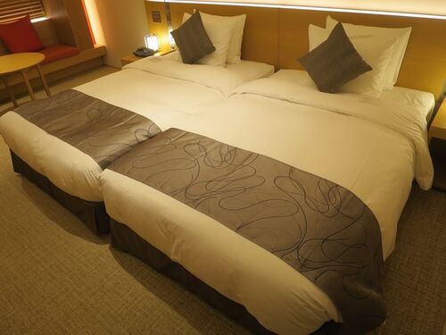 「アッパーフロア ツインルーム」 京都市中京区二条城前にあるANAクラウンプラザホテル京都に宿泊しました。 ホテル外観 パブリックエリア フロア図 扉まわり アッパーフロア ツインルーム ベッド 机まわり 眺望 クローゼット 水回り 洗面所 バスタブ シャワ…