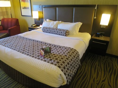 「デラックス キング」 ロサンゼルス国際空港にあります。空港周辺のホテルエリアに多数立ち並ぶホテルのひとつです。巨大空港だけにホテルの数も半端ないです。その中からクラウンプラザを選んだのは何てことはありません、IHG会員だからという理由だけです…