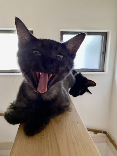 階段の手すり、はたまた2階の廊下から…。 手すりに飛び登ろうとして、誤って反対側の階段に落下したら大変です。ましてや階段の角に背中でも強打しようものなら、骨折するのではないか?現に他所様の飼育記を読むと、そのような事故にあってしまった猫もい…