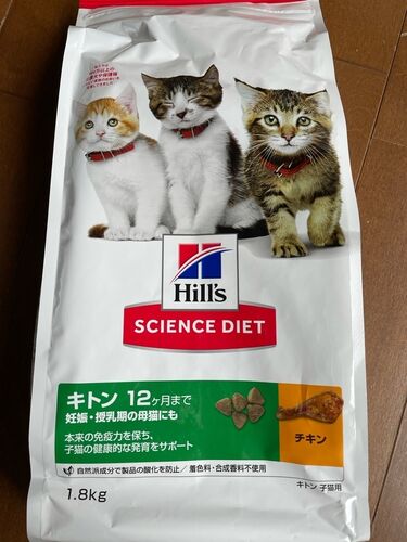 猫のエサもこれで4種類目です。 猫の健康を考えている人には支持率の高い「ヒルズ・サイエンス・ダイエット」の製品を試してみました。 12ヶ月までのキトン用です。パッケージに描かれたあざと可愛い子猫たちの絵に、胸がギュッとなります。 謳い文句はどの…