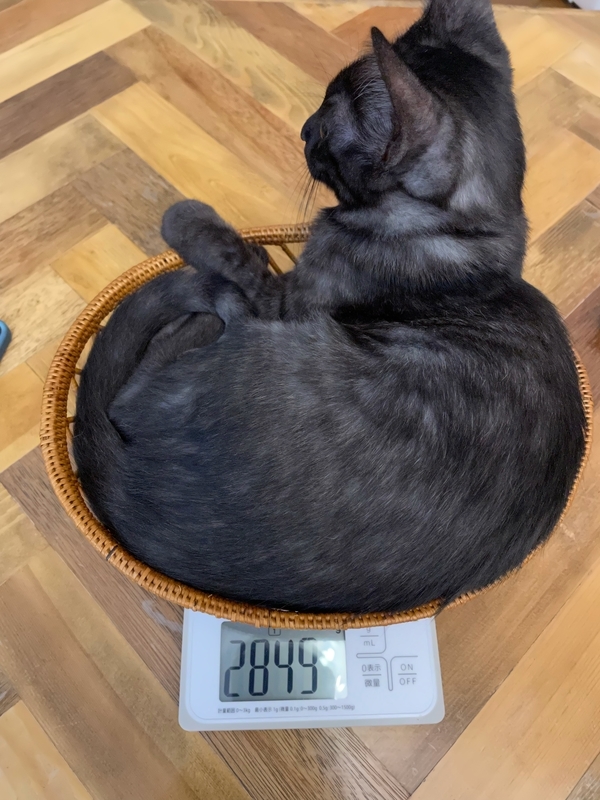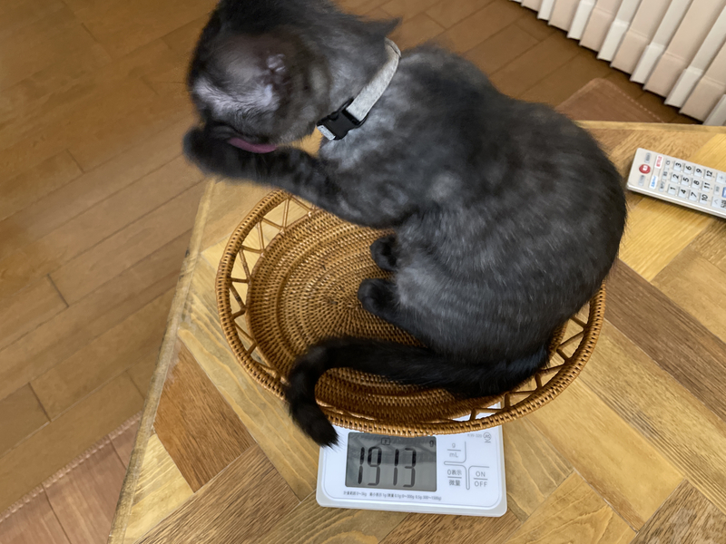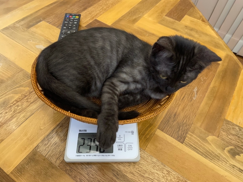 ついにトーゴの体重が3キロを越えたため、キッチンスケールでの計測ができなくなりました。