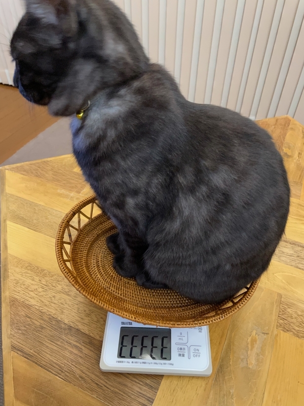 それはまさに健康の証!とばかりにうれしくて、キッチンスケールに表示された数値を猫の成長を記録するアプリに嬉々として打ち込んでは、右肩上がりの折れ線グラフを見るのが楽しいものでした。