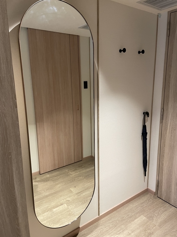 入口の近くには大きな姿見があります。