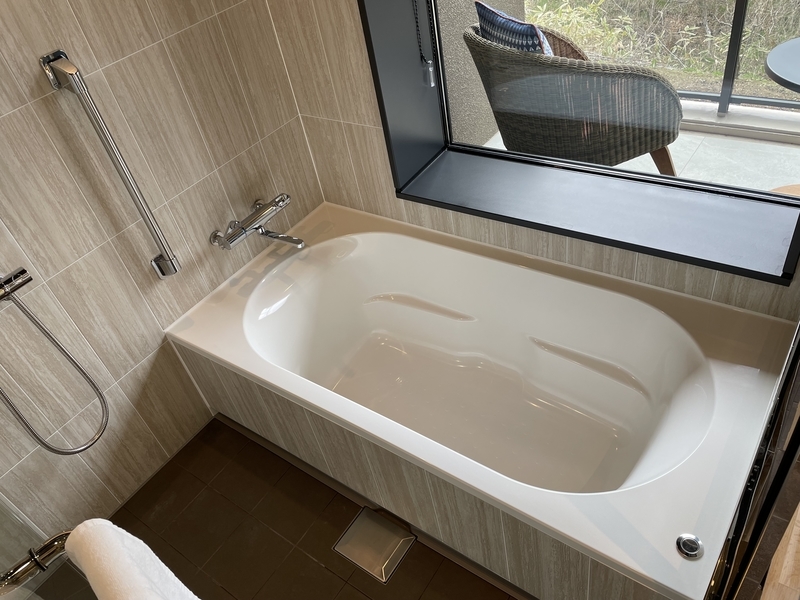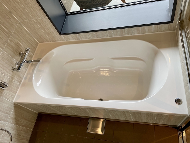 バスタブは足が伸ばせるサイズです。