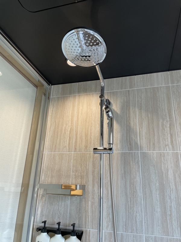 シャワーはレインシャワーとハンドシャワー。
