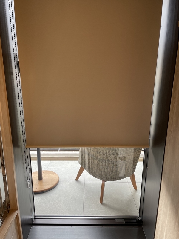 窓には遮光性のロールスクリーンがあります。