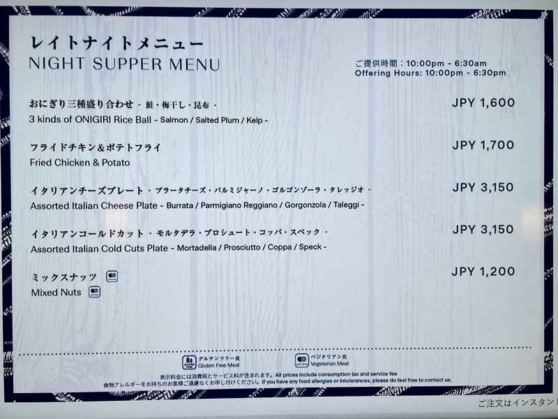 夜10時以降のレイトナイトメニュー