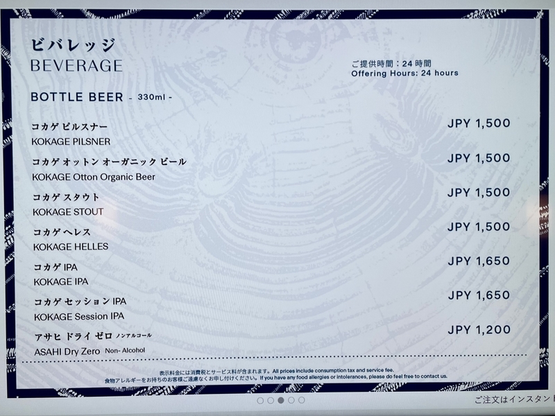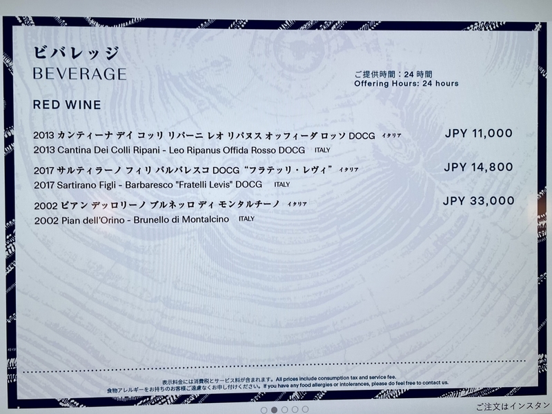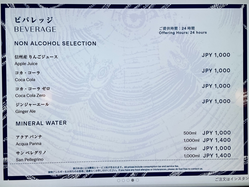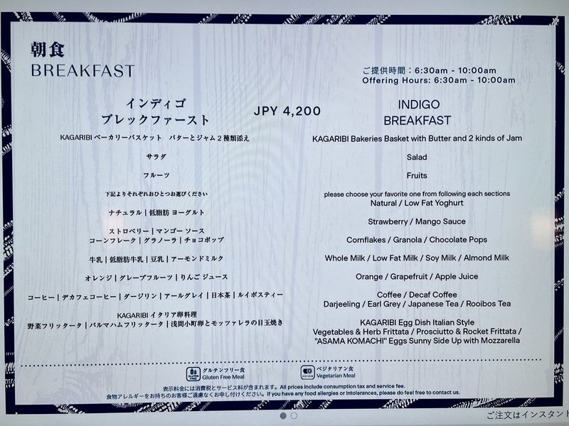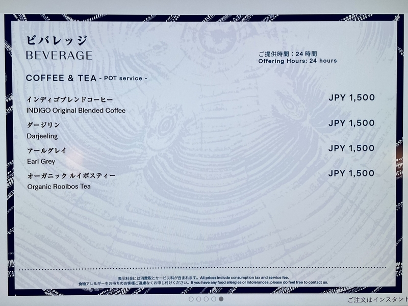 ルームサービスメニュー
