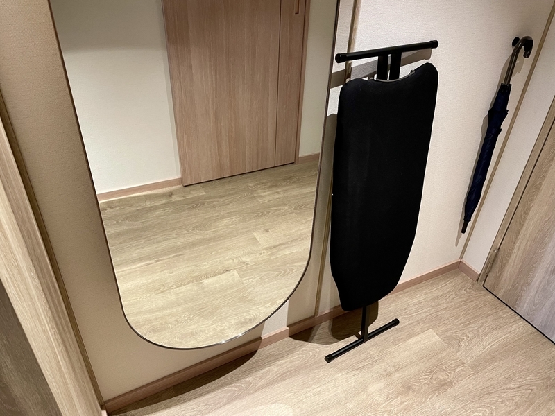 姿見の裏にはアイロン台が収納されていました。
