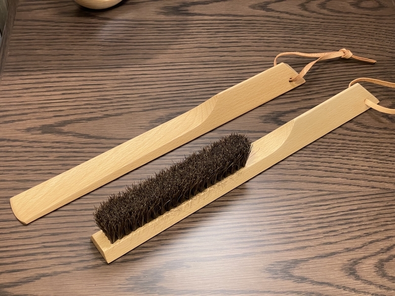 靴べらや洋服ブラシは木製のデザインされた格好の良いものでした。